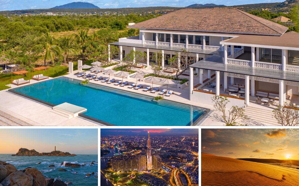 ■在阿澤萊可卡灣的度假生活,坐落在佔地 4.5 公頃的翠綠花園之中與綿延五公里的白沙灘的中心位置。東邊是宏巴島(Hon Ba Island)及其歷史悠久的燈塔,西邊是高聳宏偉的沙丘,環境寧靜,是放鬆身心和恢復活力的理想場所。寬敞的涼亭通往戶外露台和花園,採用柔和的中性色調,靈感來自當地的沙子和花崗岩的色調,營造出優雅、休閒和私密的環境。
